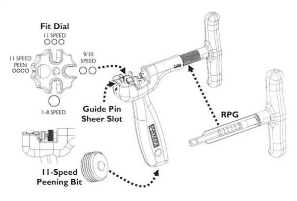 Pedro’s propose un dérive chaîne de haute qualité avec une conception favorisant une meilleure prise en main et donc une grande efficacité lors du démontage de votre chaîne. Il offre la possibilité de calibrer à la bonne dimension l’espace pour insérer le maillon. Un emplacement est prévu dans la poignée pour y glisser les poinçons.