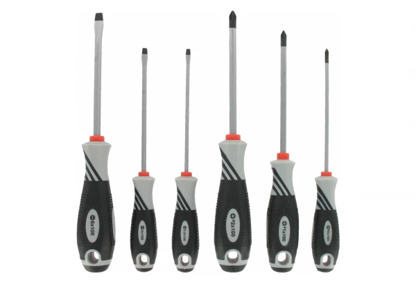Jeu de 6 tournevis VAR avec des lames en acier S2, traitée thermiquement pour une durée de vie accrue.