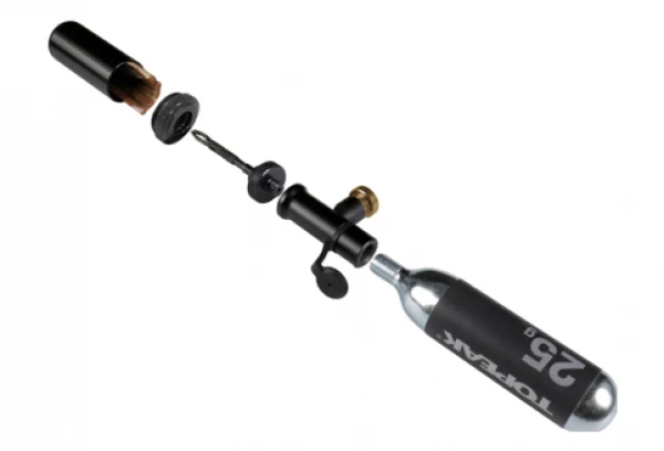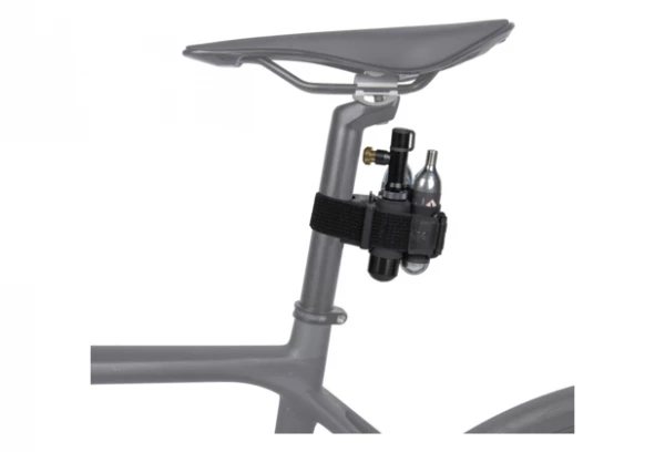 Un kit de réparation compact tout-en-un à positionner sur votre tige de selle.