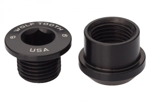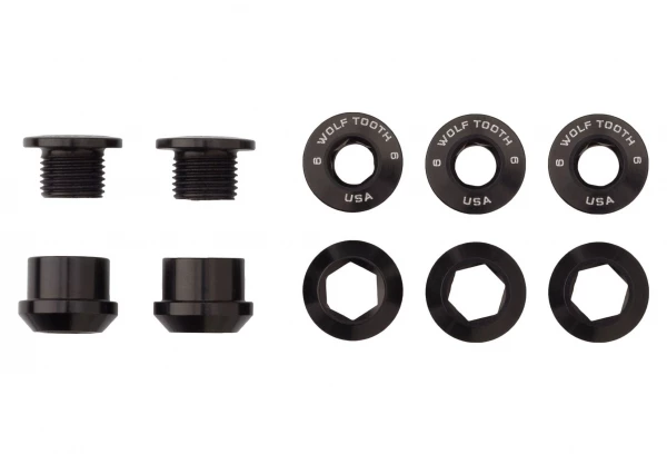 Wolf Tooth a conçu ces vis cheminées pour qu’elles soient les meilleures sur le marché. Optimisées pour une configuration mono-plateau, elles ont une empreinte hexagonale de 4 mm sur la vis et une de 6 mm sur l’écrou. Celles-ci mesurent 6 mm de long et fonctionnent donc parfaitement avec n’importe quelle vis sur un plateau « mono » qui n’a pas de trous filetés.