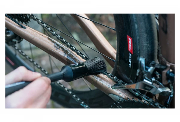 Atteindre les parties les plus profondes et les plus sombres de votre transmission peut être un défi sans le bon outil. C’est pourquoi nous avons développé notre brosse de transmission de haute qualité. Bénéficiant d’une finition moyenne et entièrement noire, c’est le parfait équipement pour appliquer notre nettoyant Bio Drivetrain à votre chaîne, cassette, mécanique et pignons en un rien de temps.