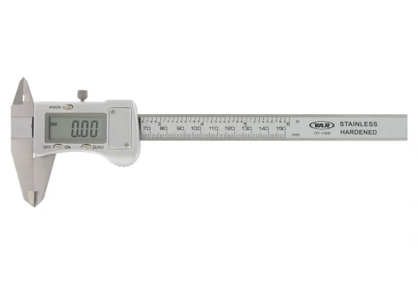 Le pied à coulisse VAR possède une capacité de mesure 150 mm / 6 pouces ainsi qu’une résolution de 0.01 mm / 0.0005 pouces.