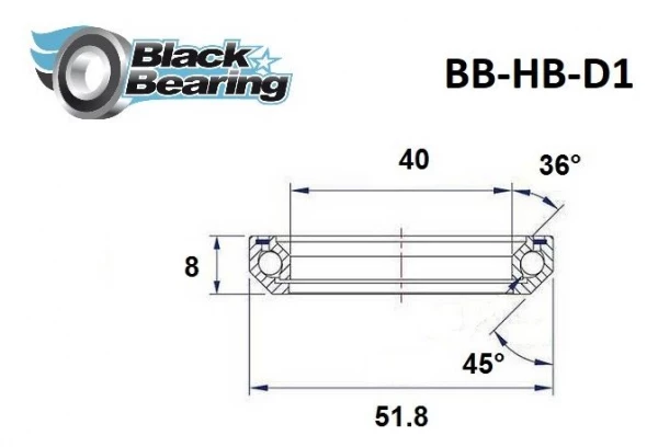 Roulement De Direction Black Bearing D1 40 X 51.8 X 8 Mm 36/45°