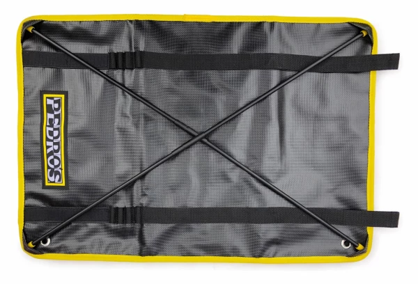Vous avez hâte que vos outils soient organisés, protégés et prêts à l’action ? Alors, régalez-vous avec le Pedro’s Burrito Tool Roll II. Cette trousse à outils de qualité professionnelle présente une grande surface (60 x 40 cm) avec des poches renforcées de différentes tailles, des poches élastiques polyvalentes, des poches élastiques pour embouts hexagonaux et une grande poche en filet à fermeture Éclair pour ranger en toute sécurité les petites pièces ou les objets personnels. Elle dispose également d’un système unique de monture en X qui transforme le rouleau flexible en une palette d’outils rigide. Déroulez la Burrito Tool Roll II, installez les tringles de la monture, suspendez-la à un support de réparation ou à une valise à outils, et mettez-vous au travail. Lorsqu’il est temps de remballer, l’extérieur imperméable et le rabat interne protègent vos outils et les sangles velcro permettent de tout garder en ordre.